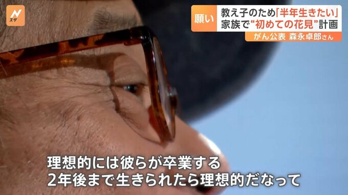 「この4月から、2年生をゼミ生として採用しちゃっているので、この子たちを、半年あれば、“森卓イズム”を叩き込める。少なくとも半年は生きていないと、彼らに申し訳ないなって。だから正直言うと、できれば半年、生きたい。理想的には、彼らが卒業する、2年後まで生きられたら理想的だなって思っていますね」