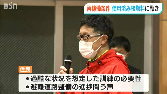 この日の会場には主に原発から5キロ圏内に住む住民およそ40人が集まり、「地域で高齢化が進む中、より過酷な状況を想定した訓練が必要なのではないか」といった指摘や、桜井市長らが国に要請している避難道路の整備について、進捗を問う声などが挙がりました。