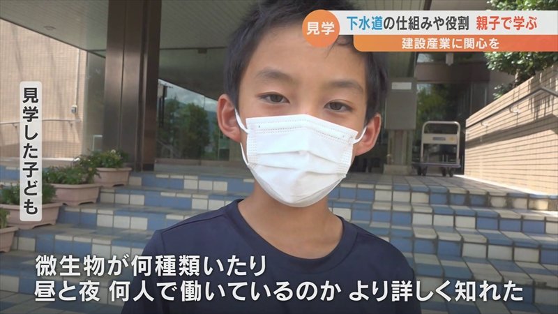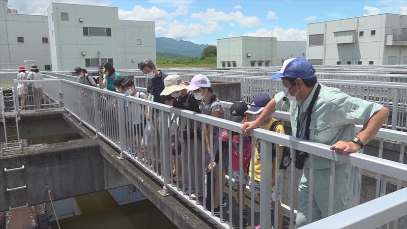 この親子見学会は建設産業に関心をもってもらおうと県が初めて開いたもので、笛吹市の峡東浄化センターには小学生の親子約30人が訪れました。