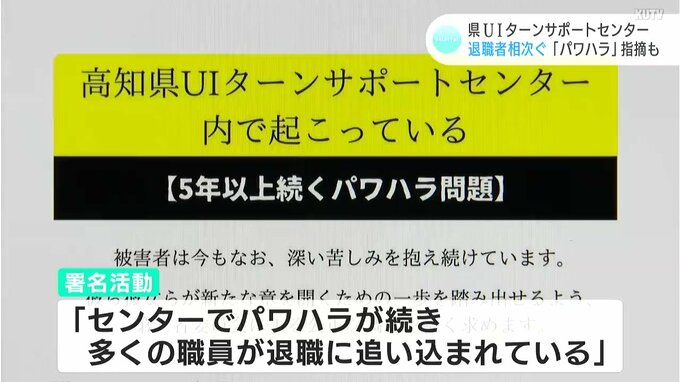 高知県内への移住促進や人材確保に取り組む高知県UIターンサポートセンターで退職者が相次いでいることが分かりました。「パワハラが原因」と訴える退職者側に対しセンターは「パワハラは該当しない」としていて、28日の理事会でも経緯が報告されました。