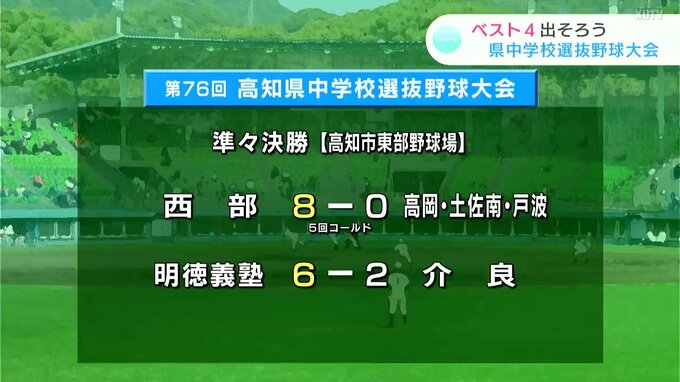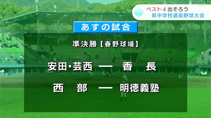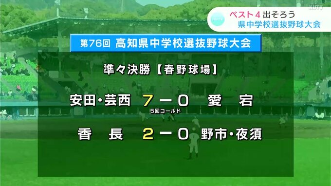 中学球児の“春のセンバツ”、「高知県中学校選抜野球大会」は、4日目の28日、準々決勝4試合が行われ、ベスト4のチームが出そろいました。