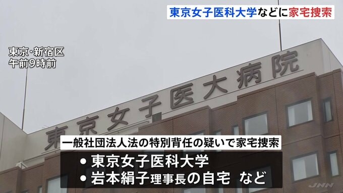 東京女子医科大学の同窓会組織から、勤務実態がない職員に給与が支払われていた疑いが強まったとして、警視庁はきょう、東京女子医科大学など複数の関係先に家宅捜索に入りました。警視庁が特別背任の疑いで家宅捜…