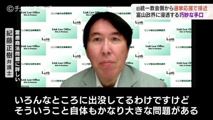 「(旧統一教会の)前会長の徳野英治さんは富山大学のOBなんです。このあたりがいろいろズブズブなのは、要職についた統一教会の幹部の人が何人もいる、出身者もいるということ」