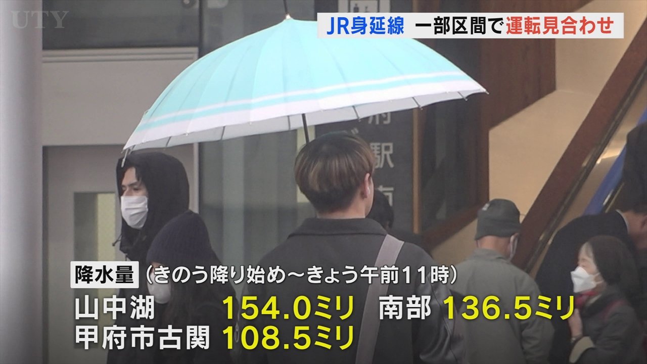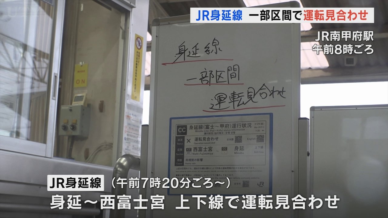 この影響で、JR身延線は一部の区間で運転を見合わせています。