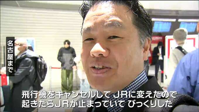 「27日夜の時点で飛行機が飛ばないかもしれないというので、飛行機をキャンセルしてJRに替えたので起きたらJRが止まっていてびっくりした」