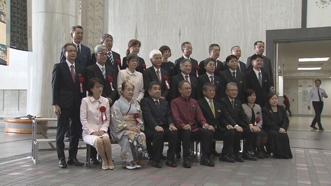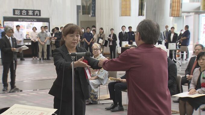 玉城知事は「沖縄県の振興発展と県民福祉に尽力してきた。今日の発展は地道な努力の足跡であり、深く敬意を表する」と述べ退職者を労いました。