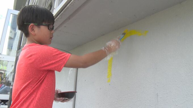 子ども達ははけを手に思い思いに絵を描き、公民館の外壁には個性豊かなイラストができあがりました。