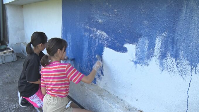 うるま市の川田区で、長年に渡って地域住民が慣れ親しんできた公民館が取り壊されることになり、子ども達が最後の思い出作りに壁画を制作しました。