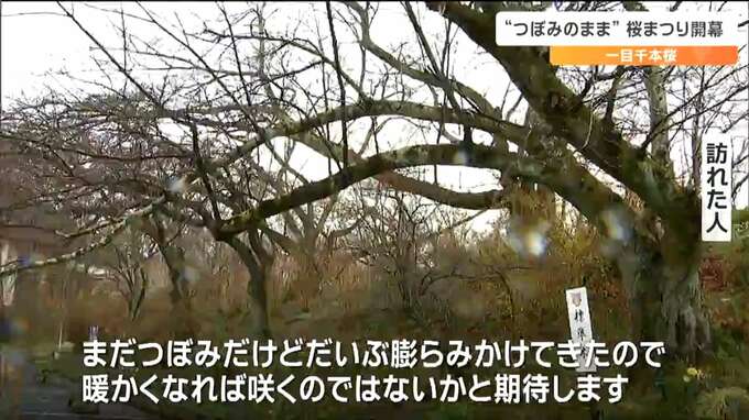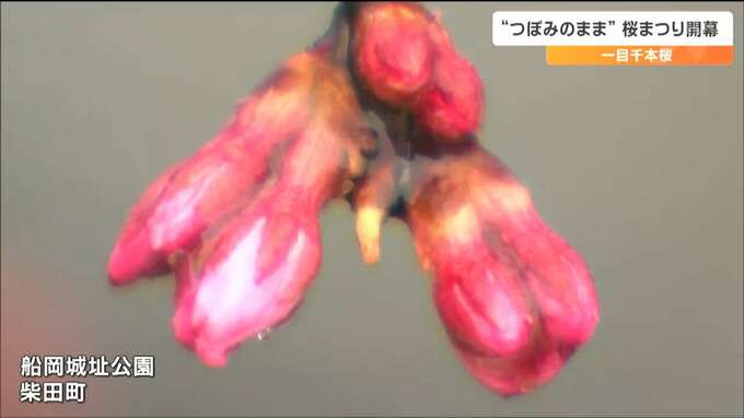 「一目千本桜(ひとめせんぼんざくら)」で知られる宮城県大河原町の白石川沿いで29日「桜まつり」が開幕しました。桜はまだつぼみのままです。