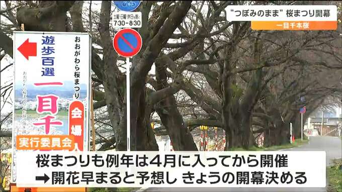 まつりも2023年と同じように開花が早まると予想し、例年より早い29日の開幕を決めていました。