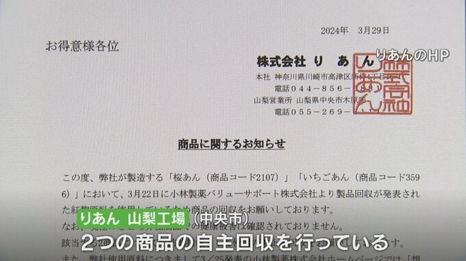 製餡会社 りあん は中央市の山梨工場が対象となっていて、2つの商品について自主回収を行っているとしています。