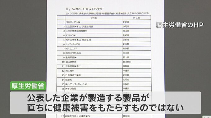 厚労省は公表した企業が製造する製品が直ちに健康被害をもたらすものではないとしています。