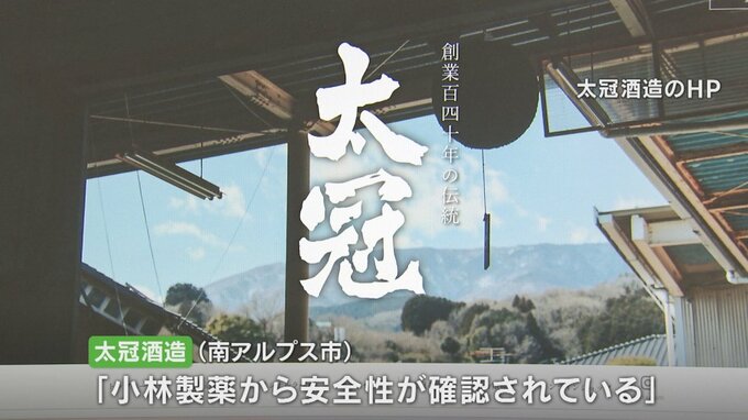 このうち県関係では3つの企業が含まれていて、南アルプス市の酒造会社 太冠酒造では製品に使用している紅麹に関して小林製薬から安全性が確認されているとしています。