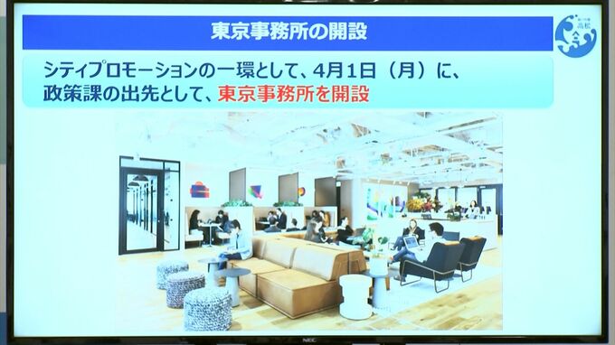 また、政策課の出先として新たに東京事務所を千代田区丸の内に開設します。観光のPRなどの競争力を強化するためで、職員を2人配置し、各課が首都圏で実施するイベントの支援や関東の民間企業と連携を図る拠点として活動するということです。