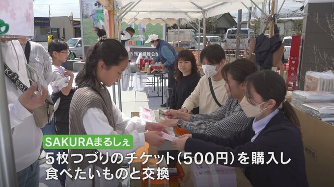 5枚つづりのチケットを500円で購入し、食べたいものと交換する仕組みで、地域住民による焼きそばや綿菓子といった露店のほかキッチンカーが並び、春休み中の子どもたちで賑わいました。