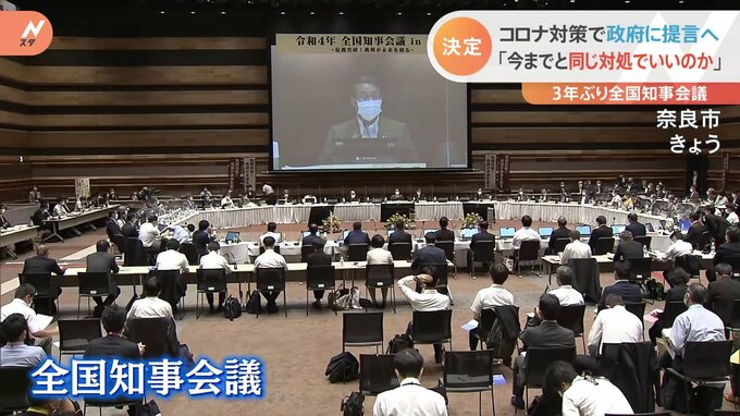 3年ぶりの対面形式となる全国知事会が奈良市で開催され、新型コロナウイルス対策について、政府に対し新たな基本的対処方針を示すよう求めることを決定しました。けさ、奈良市の近鉄・大和西大寺駅前の銃撃事件の…