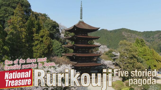 高さおよそ31m。京都の醍醐寺、奈良の法隆寺とともに日本三名塔のひとつに数えられる、国宝 瑠璃光寺五重塔。