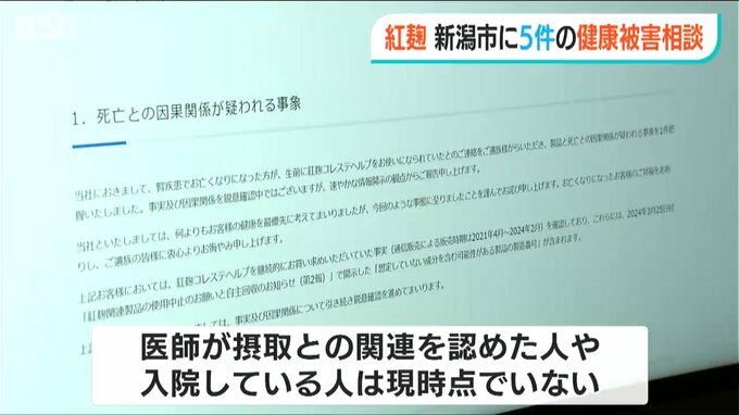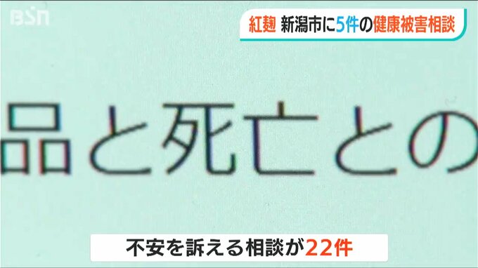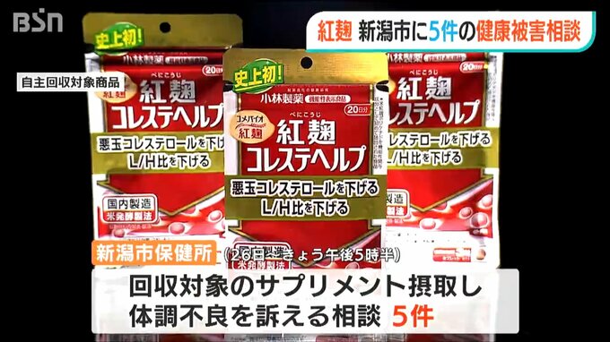 小林製薬の「紅麹」を使ったサプリメントを摂取した人たちに健康被害が出ている問題で、新潟市の保健所にも、29日までに5件の健康被害の相談が寄せられていたことがわかりました。