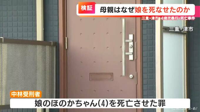 この事件は去年5月、津市の工場作業員、中林りゑ子受刑者43歳が、自宅アパートで、4歳の娘ほのかちゃんを机の上から転倒させるなどして、死亡させた罪に問われ、2月の裁判で懲役6年の実刑判決を受け、刑が確定しています。