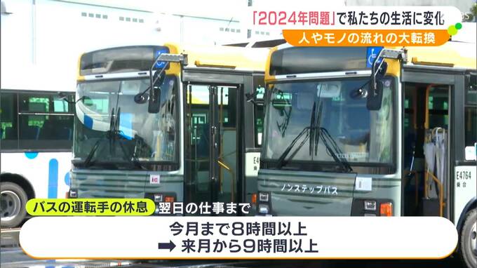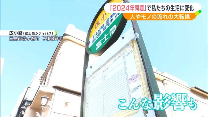2024年4月から課題となる、人やモノの流れにかかわる2024年問題です。トラックやバスなどのドライバーには、1年にあたりの時間外労働の上限(960時間)を国が設定し、4月から規制を強化。これによって運送の担い手が不足するほか、配達の遅れやものが届かないなど、わたしたちの生活に影響が出る懸念があります。静岡県内の事業者は大きな社会変化への対応を模索しています。