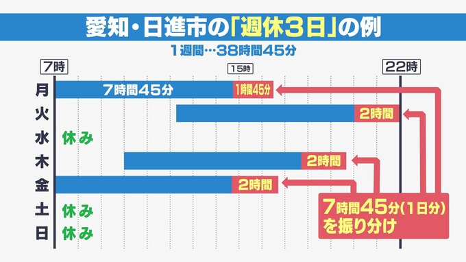 愛知県日進市では、1週間で決められた勤務時間を維持すれば、出勤や退勤時間をずらせる制度をつくりました。