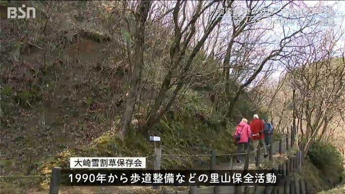 今年は4月7日まで開園するという雪割草の里では、「大崎雪割草保存会」が1990年から歩道整備などの里山保全活動を続けています。