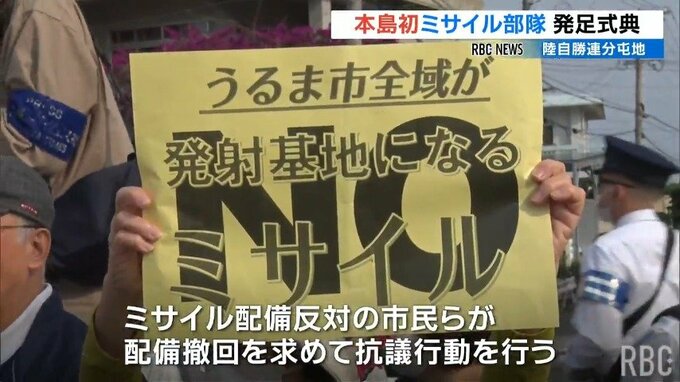 一方、勝連分屯地の外ではミサイル配備に反対する市民らが配備撤回を求めて抗議行動を行い、現場は一時騒然としました。