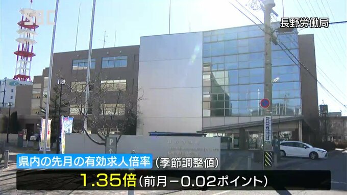 長野県内の2月の有効求人倍率は1.35倍で、2か月ぶりに前の月を下回りました。長野労働局によりますと、県内の2月の有効求人倍率(季節調整値)は前の月を0.02ポイント下回る1.35倍でした。新規求人数は1万6,511人…