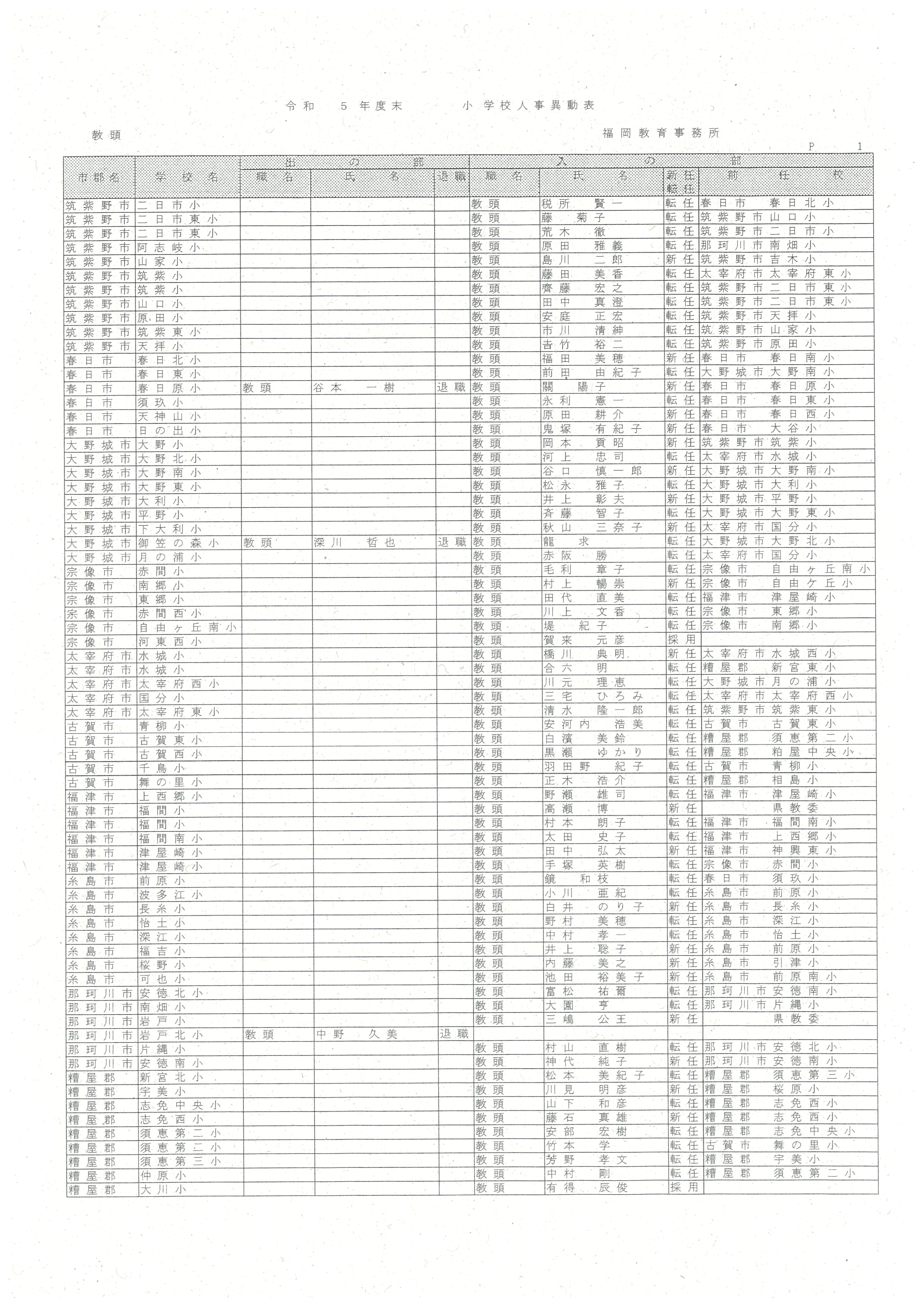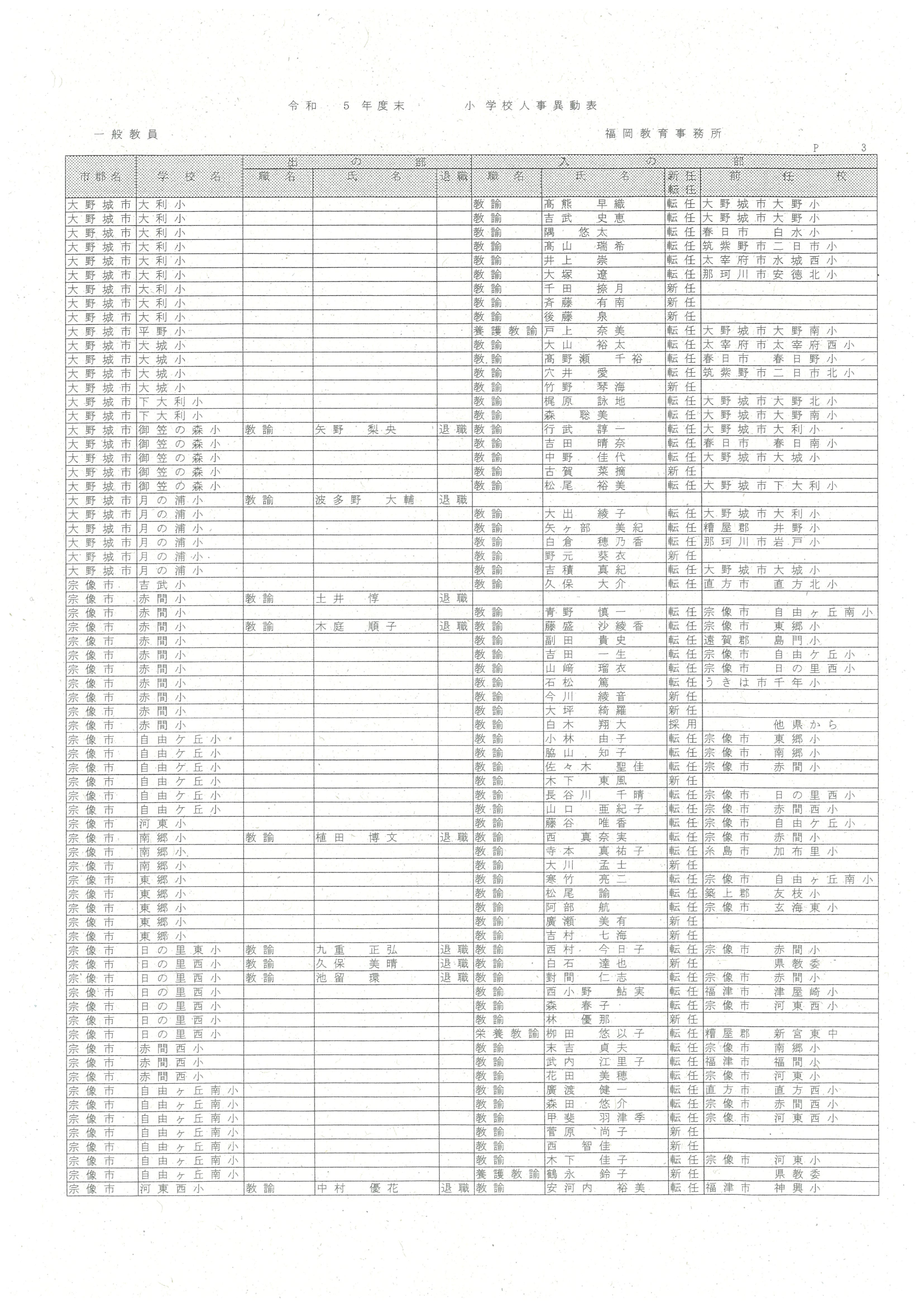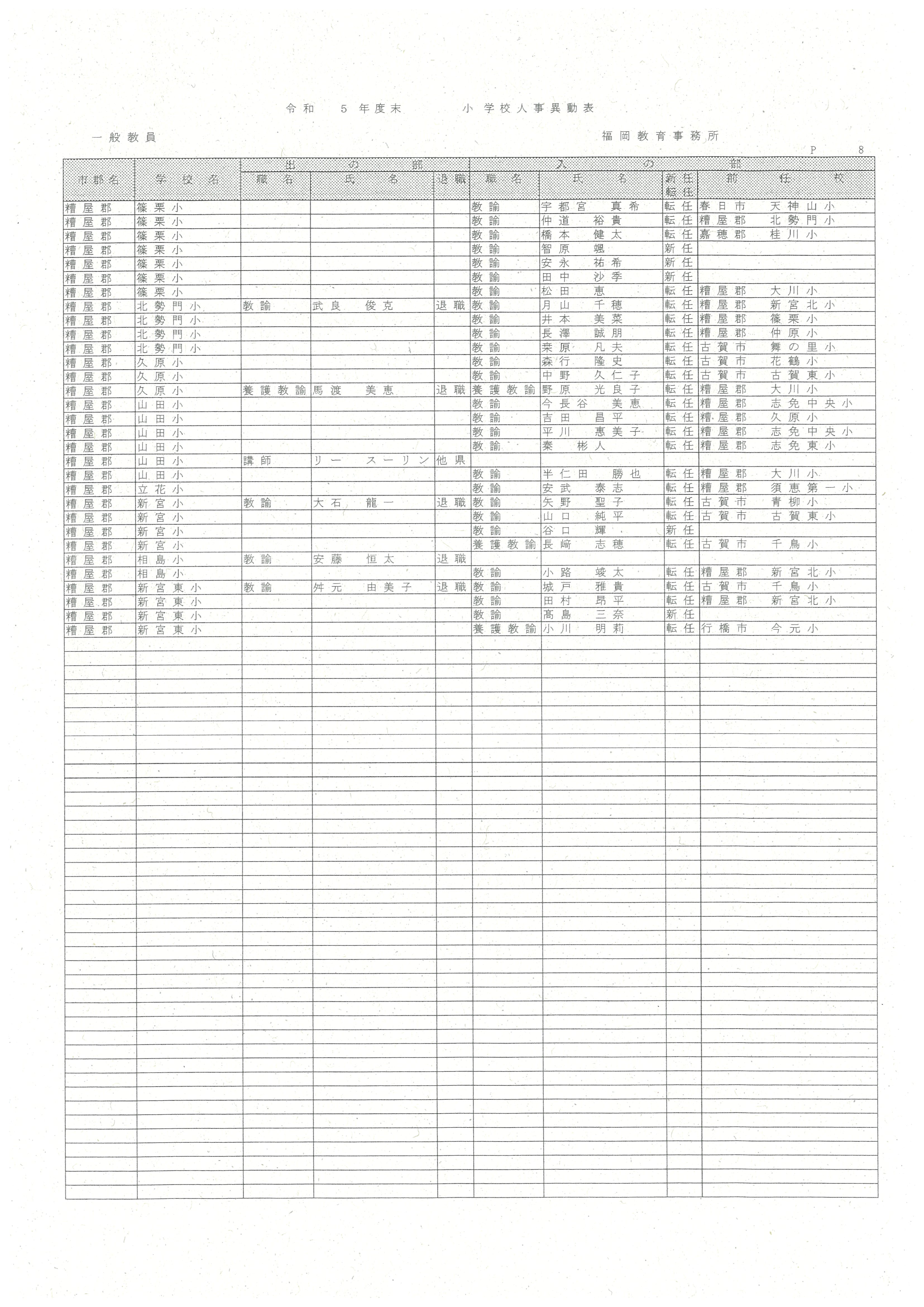 福岡県教職員人事異動2024「あの先生は今どこに?」 小学校・中学校・高校・特別支援学校【全件掲載】