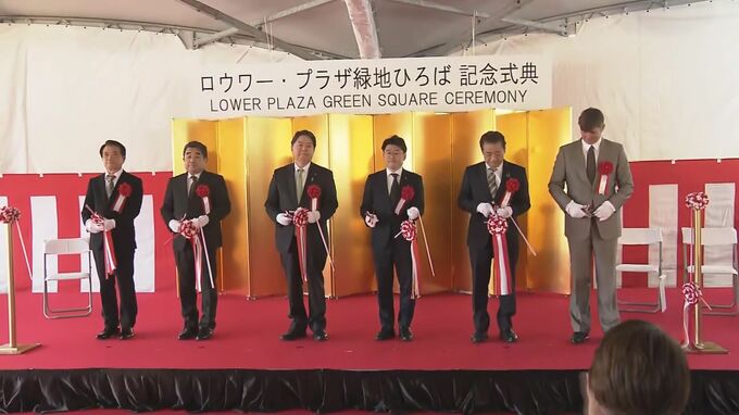 1945年からアメリカ軍に利用された「ロウワー・プラザ住宅地区」は、土地の返還行程に関する日米合意で、「2024年度またはその後」の返還が決まっていますが、返還条件となっている102戸の新たな住宅建設が完了していません。そのため、返還に先立ちあすからは緑地広場として日米で「共同使用」が始まります。これを記念して開かれた式典には、日米両政府の関係者らおよそ160人が参加しました。