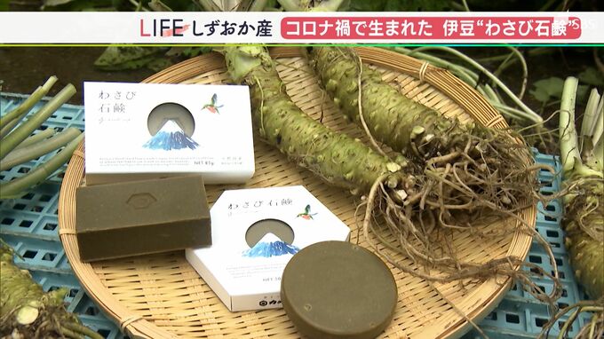 伊豆天城山のわさび田です。世界農業遺産に認定されている「ワサビ」。そのワサビの名産地に「しずおか産」がありました。「わさび石鹸」です。<野田栞里記者>「洗ってみます。泡も緑色なんですね。これもワサビ…