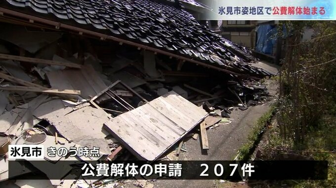 氷見市では、「半壊」以上の住宅など公費解体の対象が900件を超えていて、29日までに市民から207件の公費解体の申請が出されています。市は、来月から本格的に作業を進めていきたいとしています。