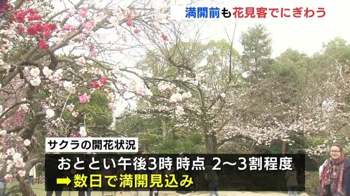 気象台によりますと、29日時点のサクラの開花状況は2~3割程度で、数日で満開を迎える見込みだということです。