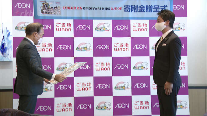 福岡市と包括連携協定を結ぶ流通大手のイオン九州が、子供たちの育成に関わる活動を支援しようと、電子マネーの利用金額の一部を福岡市に寄付しました。イオン九州の柴田祐司社長は、寄付金341万円の目録を…