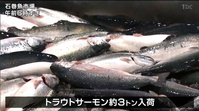養殖魚のトラウトサーモンが1日、宮城県の石巻魚市場に、2年ぶりに入荷しました。トラウトサーモンは成長が早く養殖の期間を短く出来るため市場の期待は高いということです。