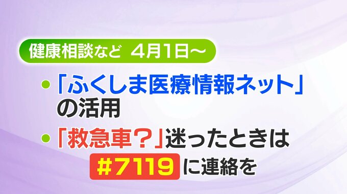 こうしたかかりつけ医がない場合は、県内の医療機関の情報をまとめた「ふくしま医療情報ネット」を活用してほしいと呼びかけています。また、救急車を呼ぶか迷った際には、「#7119」に連絡するよう合わせて呼びかけています。