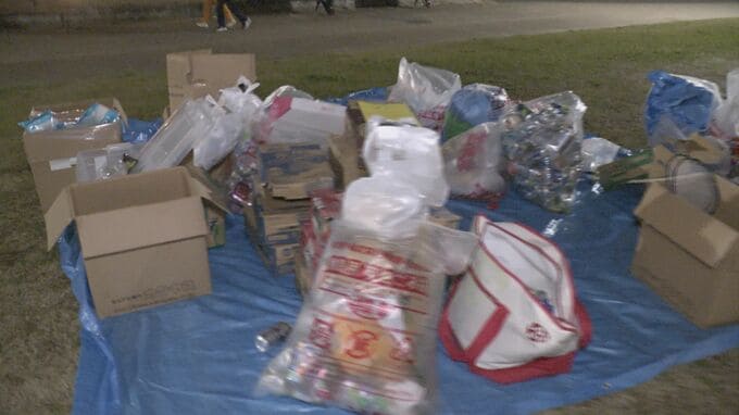 ブルーシート上に大量のお酒や空き缶が…日付が変わっても誰も片付けには来ませんでした。