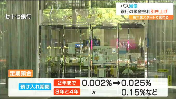 新年度から銀行の預金の金利が上がります。日本銀行がマイナス金利を解除し17年ぶりに利上げすることを受け、七十七銀行と仙台銀行は、4月1日から普通預金の金利を0.02%に引き上げました。