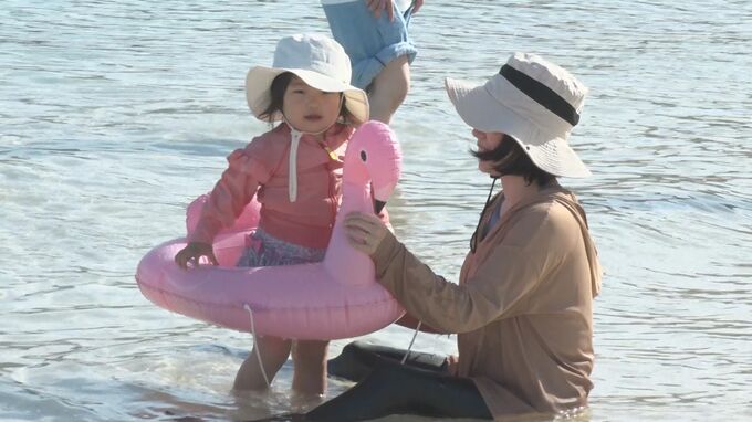 宮古島市では31日、朝の不安定な空模様から一転して青空が広がり、子どもたちは歓声と水しぶきを上げながら初泳ぎを楽しんでいました。