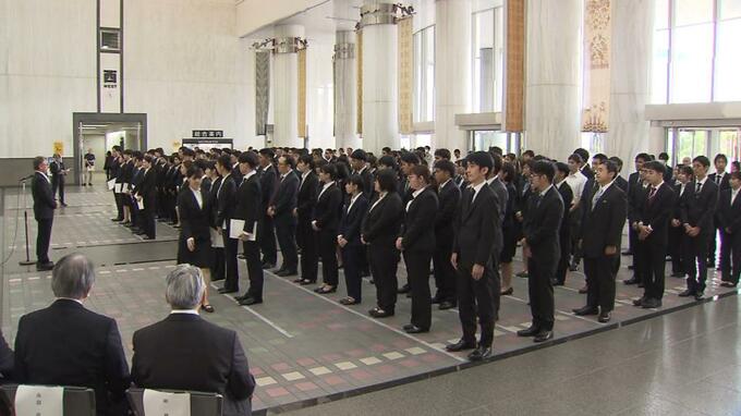 新年度のスタートとなった1日、県庁では新入職員らに辞令が交付されました。
