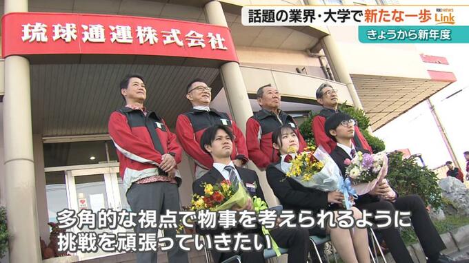 創立60周年を迎える那覇市の琉球通運では1日、物流倉庫の前で入社式がおこなわれました。