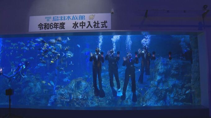 三重県の鳥羽水族館では、3月31日に恒例の水中入社式が。