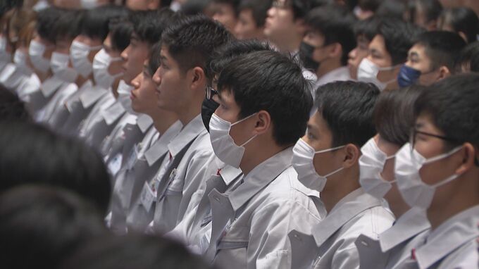 一方、愛知県豊田市のトヨタ自動車本社で開かれた入社式には、約1500人が参加。