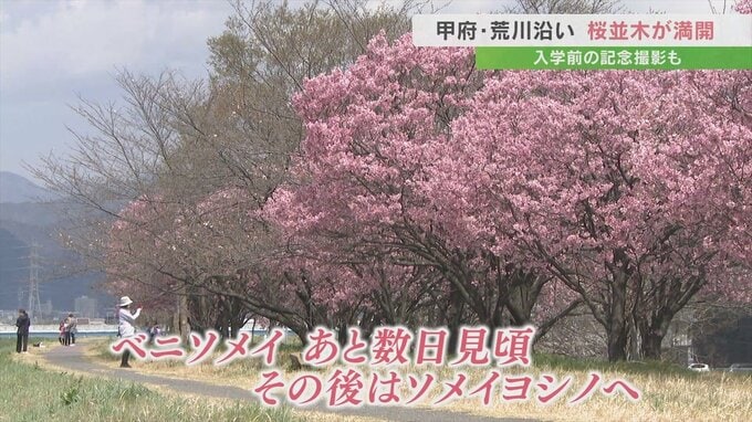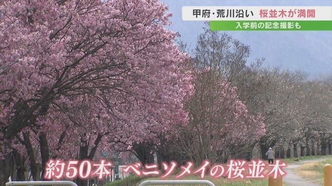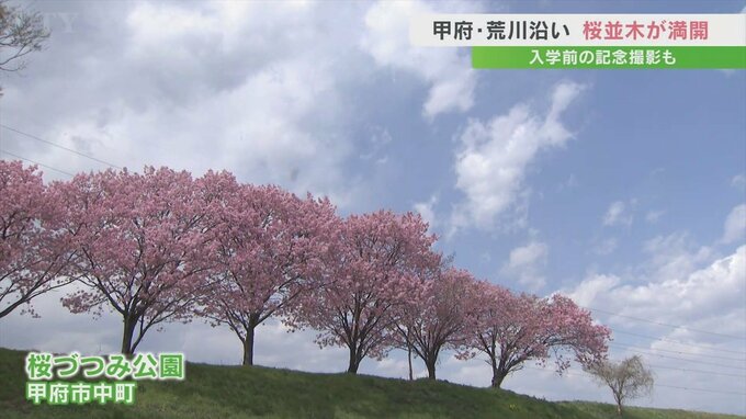 各地で春の花が咲き誇り、甲府市の荒川沿いでは桜並木が満開となりました。