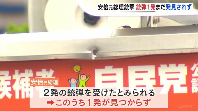 銃弾1発がみつかっていないことがわかりました。今月8日、安倍元総理が銃撃され死亡した事件では、安倍元総理が2発の銃弾を受けたとみられていますが、このうち1発が見つかっていないことが捜査関係者への取材でわ…