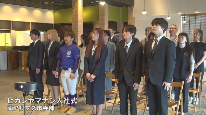 大型量販店コストコに隣接する地域交流エリアを運営するヒカレヤマナシには18人が入社し、新入社員1人ひとりが決意を述べました。