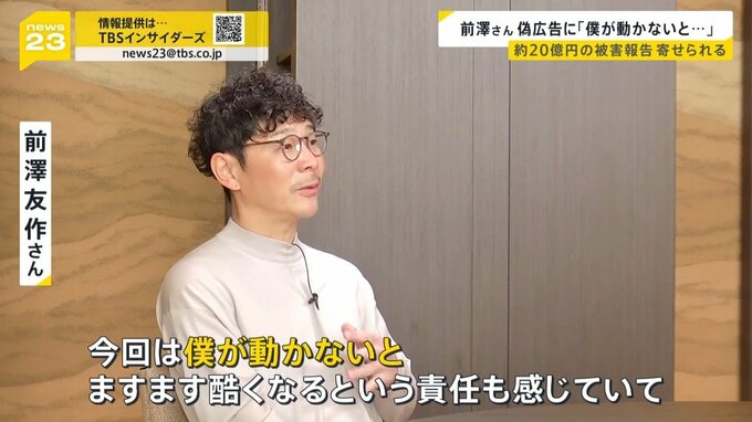 前澤さんは今回、自身の名前や写真が無断で使われた偽広告を入口に、多くの詐欺被害が出ていることを知ってほしいと初めてカメラの前で語りました。