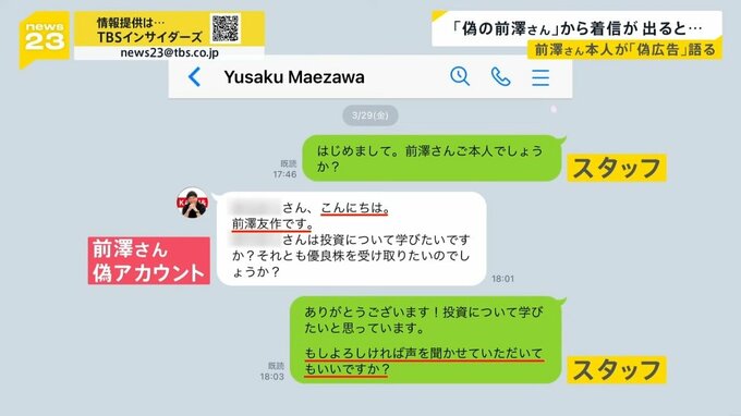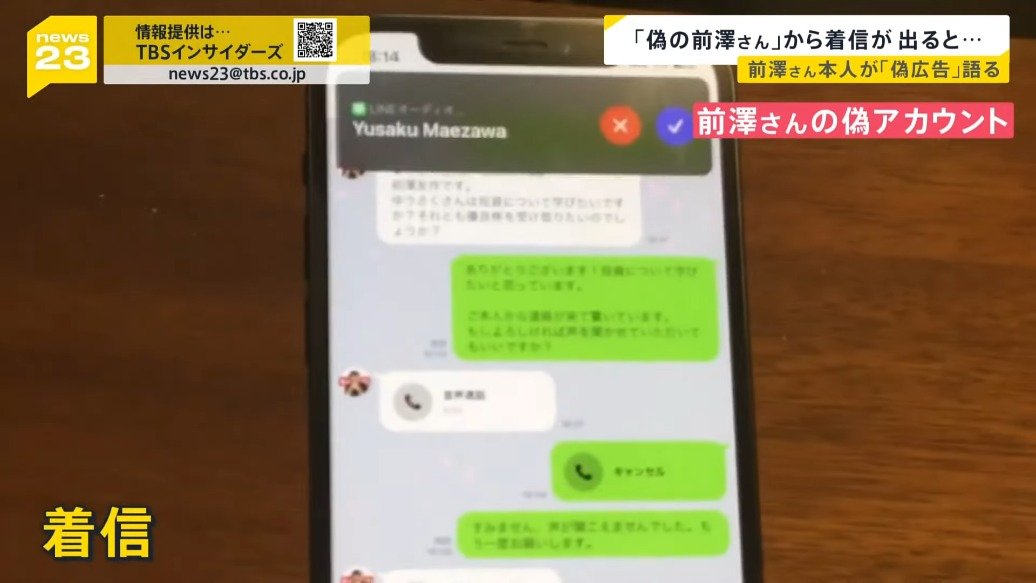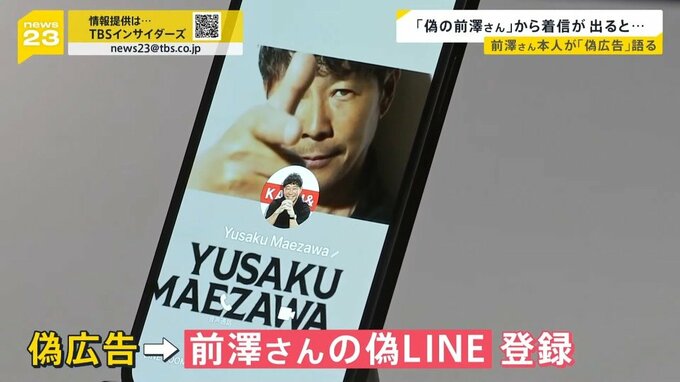 news23は、フェイスブックに出てきた偽広告にアクセスし、前澤さんのなりすましLINEに登録しました。