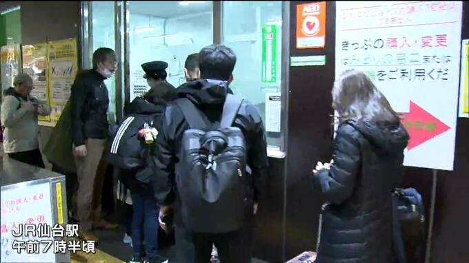 午前7時半頃のJR仙台駅構内です。新幹線中央改札口でも混乱が見られました。
