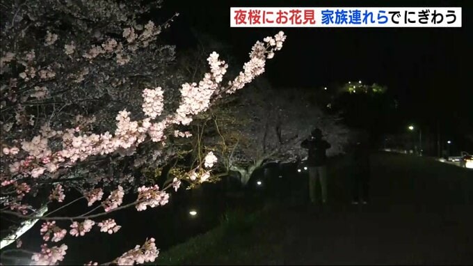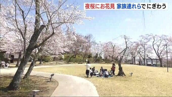 広島県三次市にあるサクラの名所で夜のライトアップが始まりました。昼間にも花見を楽しむ家族連れらでにぎわっています。